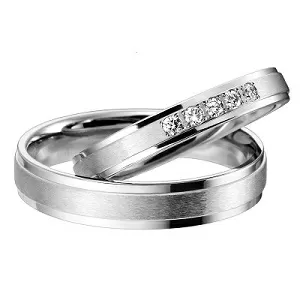 リング中央部のヘアライン調の加飾と両端の光沢ラインのコントラストが個性的なデザイン。
